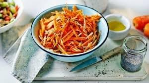 Grated Carrot and Poppy seed Salad with an orange scented dressing