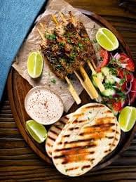 Ground spiced lamb grilled over charcoal served with pilaf rice
