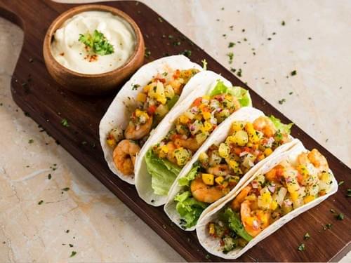 Tender Shrimp, fresh pineapple salsa and your choice of flour or corn tortillas