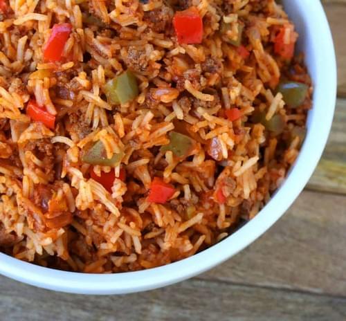 Spanish rice, often referred to as Mexican rice or arroz rojo (red rice), is a popular side dish made by sautéing white rice with aromatics and then simmering it in a tomato-based broth with spices.
